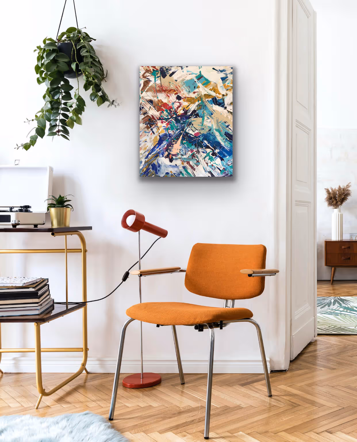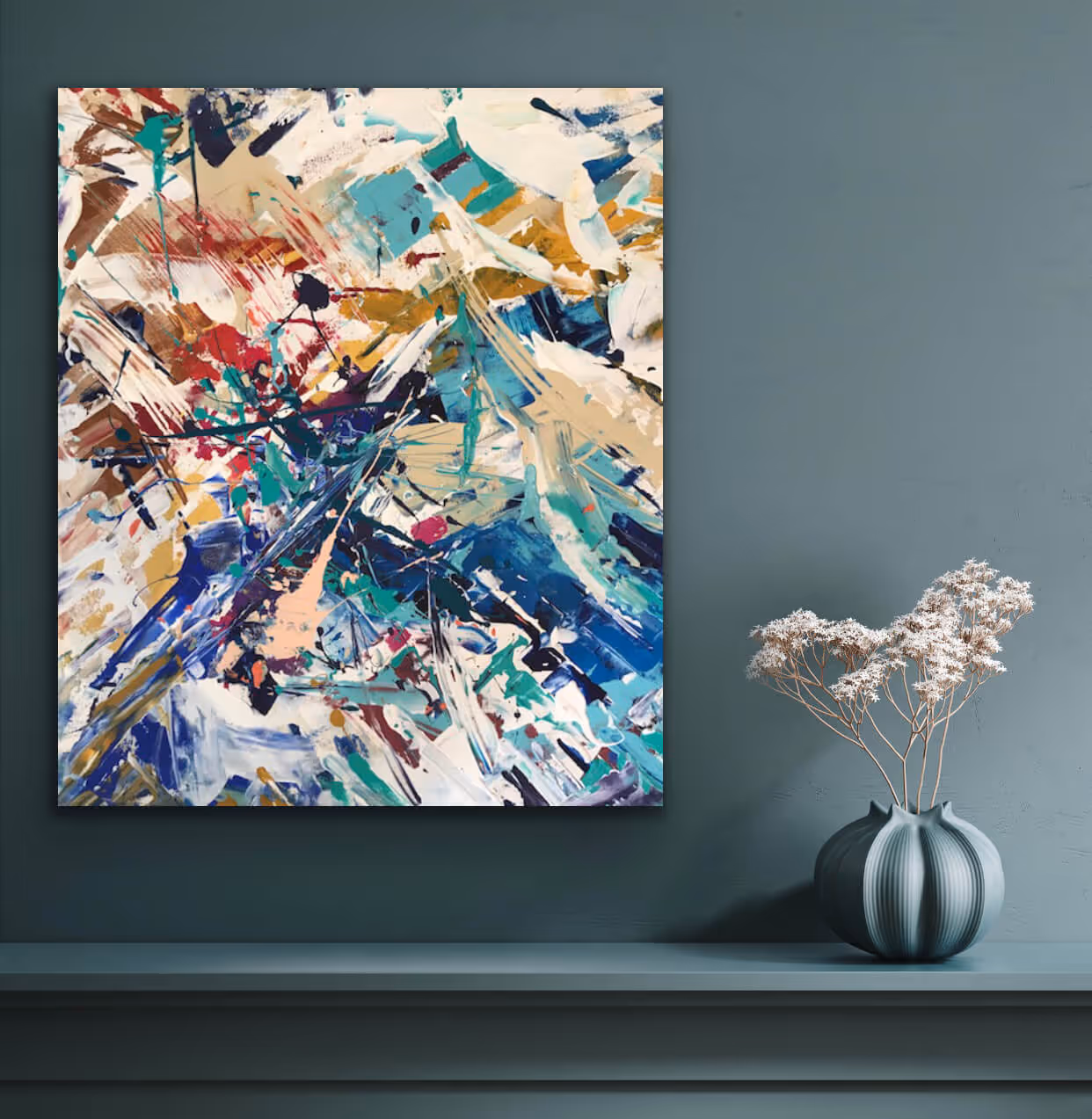 A painting full of layers of colour and movement, created alla prima, the paint was applied boldly and spontaneously, an exploration and a celebration of life.